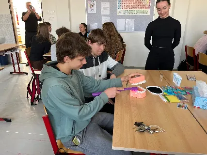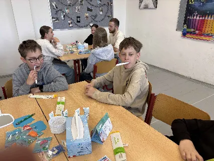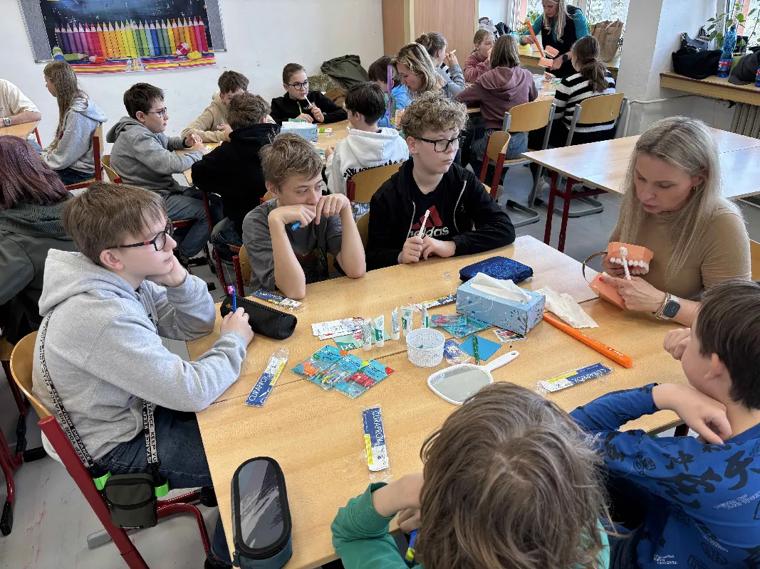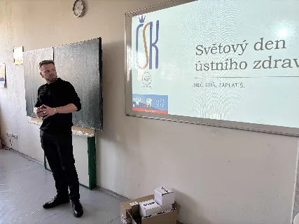 Dne 20. 03. 2026 proběhla na našem gymnáziu osvětová akce pro studenty primy až kvarty v rámci Světového dne ústního zdraví. Programem nás provedl tým zkušených zubařů a studentů Lékařské fakulty Ostravské univerzity