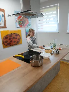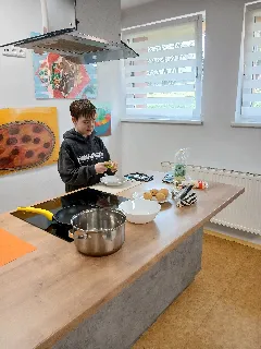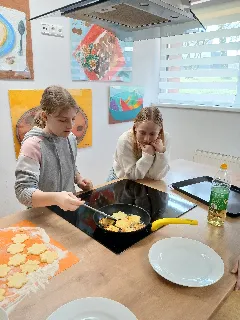 Netradiční hodina angličtiny v primě DNES | Anglický jazyk 19× Naše první dubnová dvouhodina angličtiny proběhla ve školní kuchyňce.